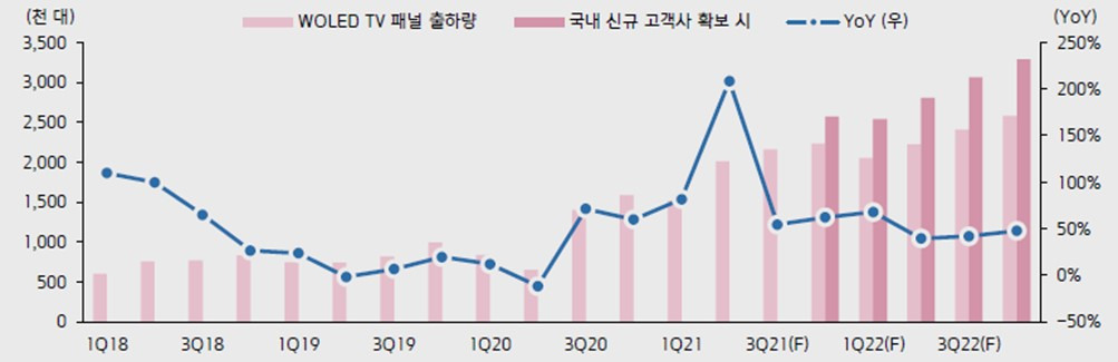 제이아이테크는 앞으로도 지속적인 기술 개발과 생산능력 증설을 통해 성장할 것으로 기대됩니다. 특히, WOLED TV 패널의 수요 증가와 함께 새로운 고객 확보가 이루어질 것으로 보입니다. 아래 그래프는 WOLED TV 패널의 출시량과 연간 성장률을 나타냅니다.