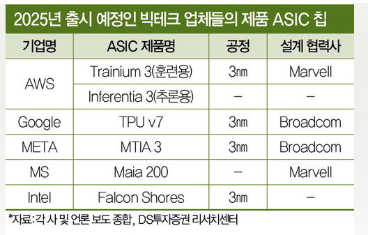빅테크 업체들의 엔비디아 칩에 대한 수요가 지속할 것으로 보이는 가운데, 2025년에는 인공지능(AI)에 필요한 메모리 반도체의 경우 주문형 반도체(ASIC) 칩 활용이 대세가 될 것으로 보입니다.